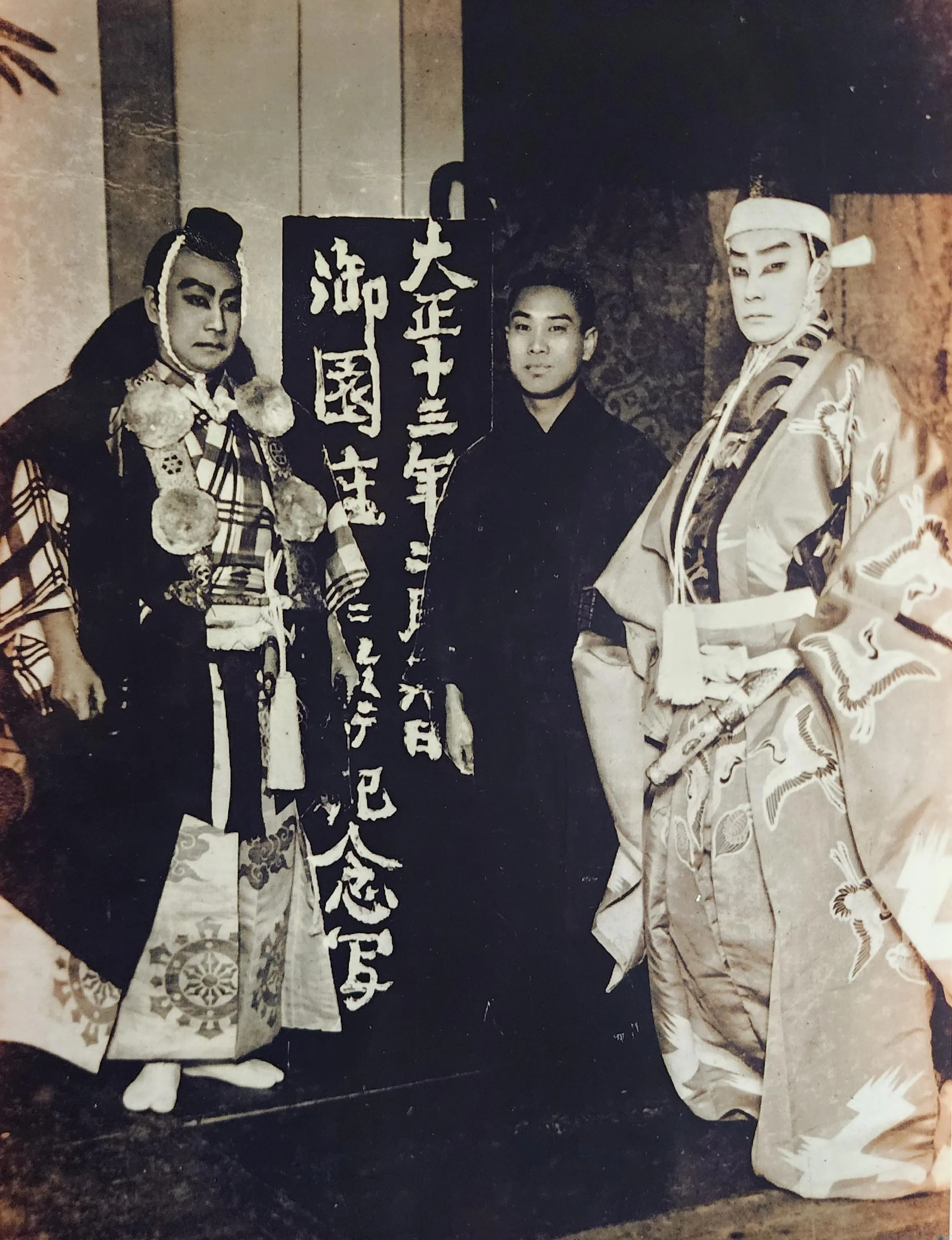 大正十三年(1924年)。 創業者である曽祖父の兄・杉野孝一と初代中村鴈次郎さん、初代松本幸四郎さんと。 現在は四代目、五代目である母娘が共に暖簾を受け継ぎ、初代から変わらぬ「温かなおもてなし」の心を大切にします。